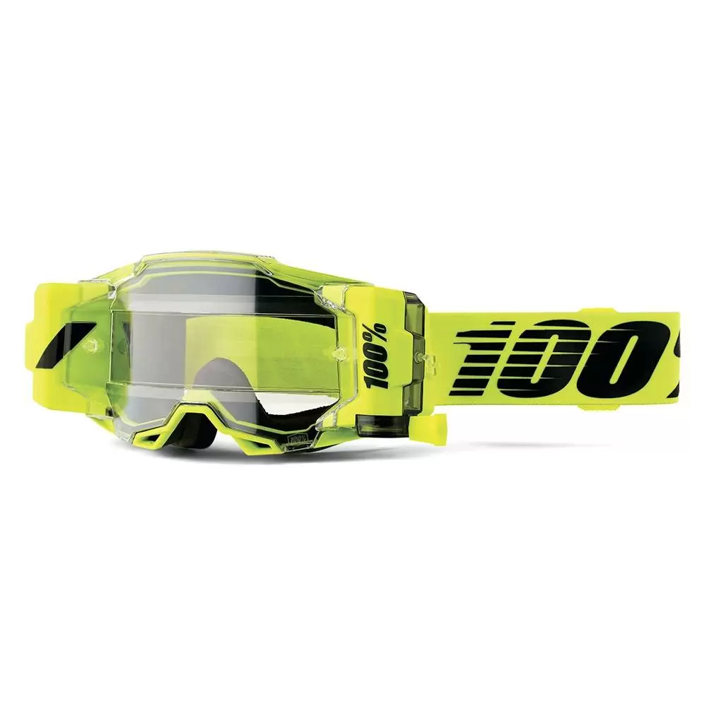 100% Armega Forecast Mud Goggles in Nuclear Citrus with Clear Lens. The Armega Goggles offer unparalleled dominance for the modern racer, bringing Ultra HD lens clarity to motocross. The 6-point locking-tab integration secures the lens and works in unison with a quick-change system enabling you to switch between lenses with a couple of simple clicks.
