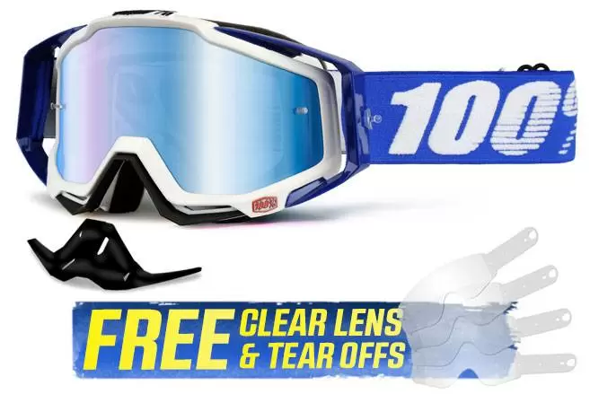 100% Racecraft Motocross Goggle in Cobalt Mirror Lens – 100 Percent Motocross Enduro Goggles & Spares