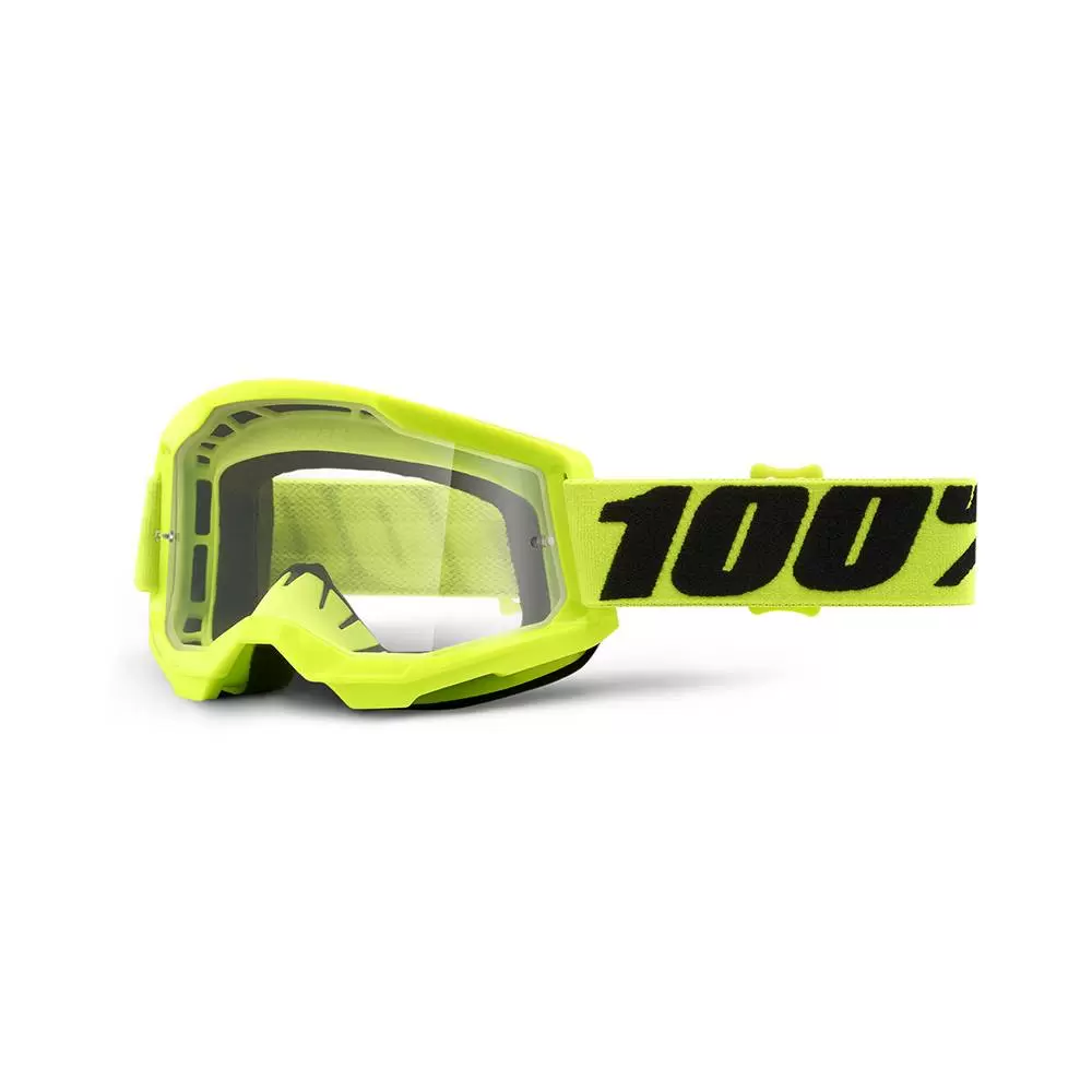100% Strata 2 Fluo Yellow Clear Lens Goggles. The 100% Strata 2 Goggles are the essential riding goggles that lead the charge of premium performance at a great value. Designed to meet the demands of top athletes and everyday riders, these goggles provide unparalleled comfort and a near limitless field of view, ensuring an exceptional riding experience.