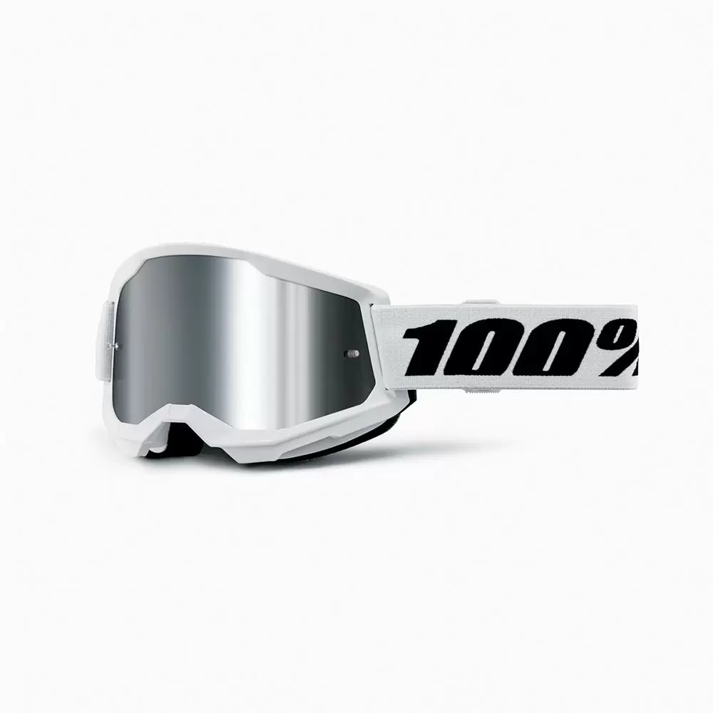 100% Strata 2 White Silver Mirror Lens Goggles. The 100% Strata 2 Goggles are the essential riding goggles that lead the charge of premium performance at a great value. Designed to meet the demands of top athletes and everyday riders, these goggles provide unparalleled comfort and a near limitless field of view, ensuring an exceptional riding experience.
