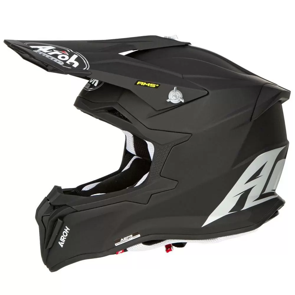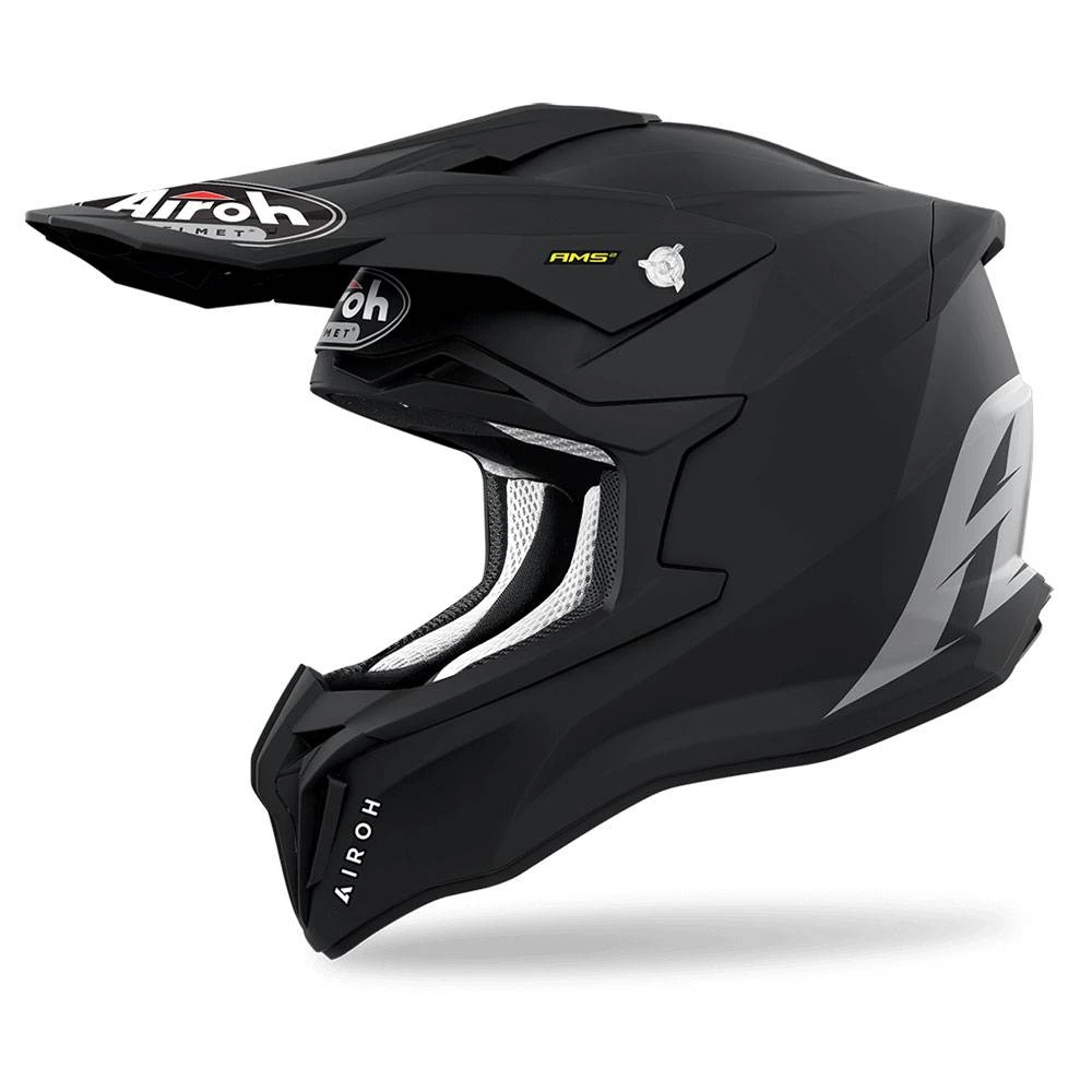 Airoh Strycker – Matt Black. The Airoh Strycker motocross helmet is made of a high-performance, lightweight and resistant fiber composite. It is characterized by incorporating the AMS 2 (Airoh Multiaction Safety System) protection system that allows the dissipation of kinetic energy in the event of an angular impact and has the AEFR (Airoh Emergency Fast Release) system.
