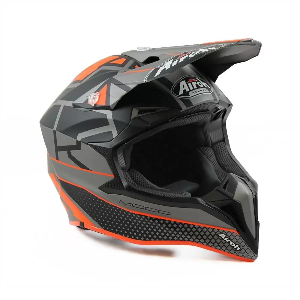 Airoh Wraap Mood Orange Matt Helmet. WRAAP: The passion for the off-road has no age limits and the new Airoh helmet wants to be the best way to bring young people closer to this world. Ultralight shell in HRT (High Resistant Thermoplastic) with three different sizes to dress all sizes.
