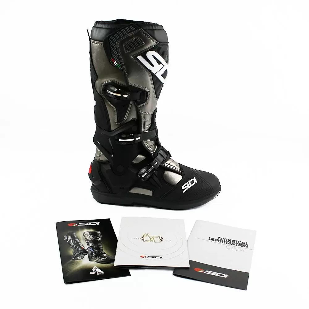 The all new ATOJO SRS motocross boot meets all these requirements. Over one pound lighter per boot than Crossfire 3! The overall height has been reduced 1cm vs the Crossfire 3 based on input from professional athletes who have helped Sidi develop the Atojo.