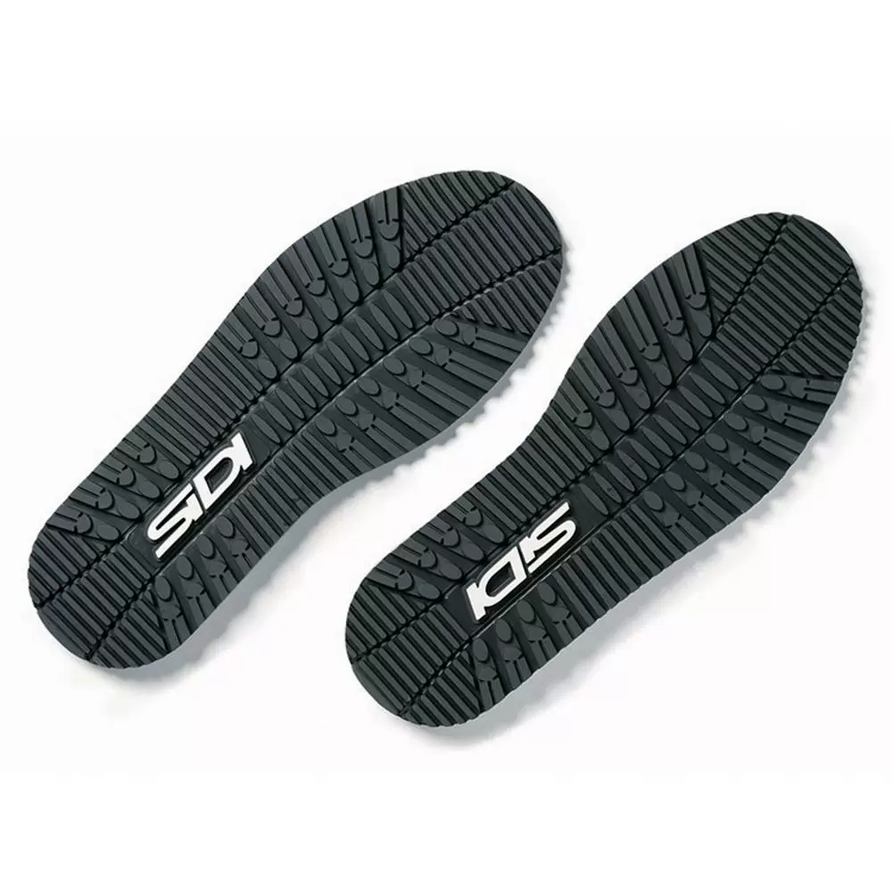 A new pair of replacement soles for the base of Sidi Courier and Zero trials riding boots.