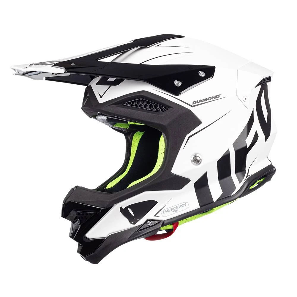 UFO Diamond Limited Edition Matt White Helmet. The UFO Diamond Helmet Collection, feature’s a unique and innovative range of helmets that deliver superior levels of safety, comfort and performance – for hitting the motocross track and enduro trail in perfect shape. With a range of exciting new colorways and bright, bold aggressive designs, UFO’s new DIAMOND Helmet give riders both unmatched race performance and unique style out on the race track.