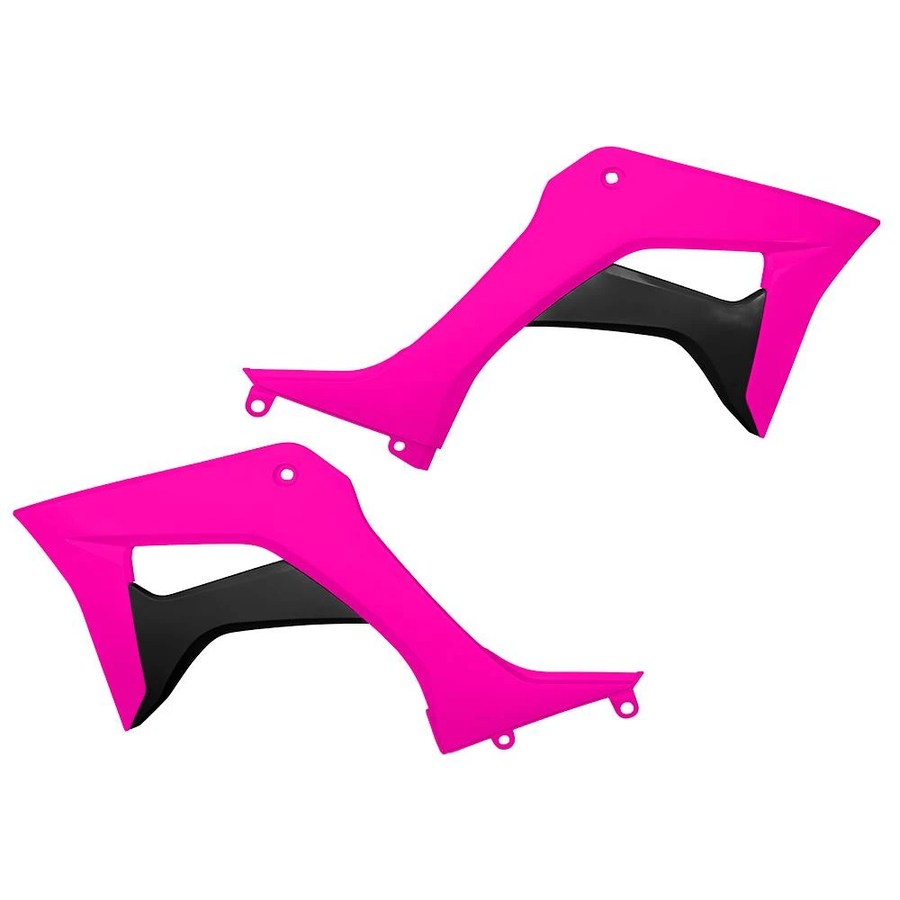 Honda Radiator Covers HO05600 by UFO Plast. Expertly crafted from high-tensile plastic, this top-grade UFO product provides superior quality and dependability. It has already cut-out openings to ensure quick and easy installation. Better still, this product will enhance the appearance of your bike, giving it a chance to look unique and stylish.