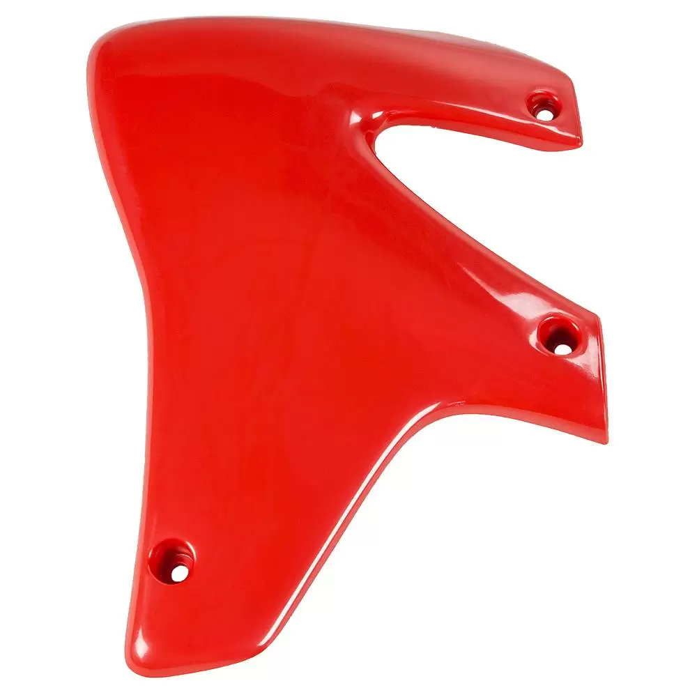 Honda Left Radiator Cover by UFO Plast®. Expertly crafted from high-tensile plastic, this top-grade UFO product provides superior quality and dependability. It has already cut-out openings to ensure quick and easy installation. Better still, this product will enhance the appearance of your bike, giving it a chance to look unique and stylish.