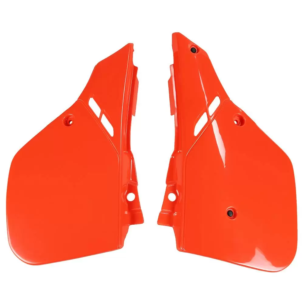 Honda Side Panels by UFO Plast®. Expertly crafted from high-tensile plastic, this top-grade UFO product provides superior quality and dependability. It has already cut-out openings to ensure quick and easy installation. Better still, this product will enhance the appearance of your bike, giving it a chance to look unique and stylish.