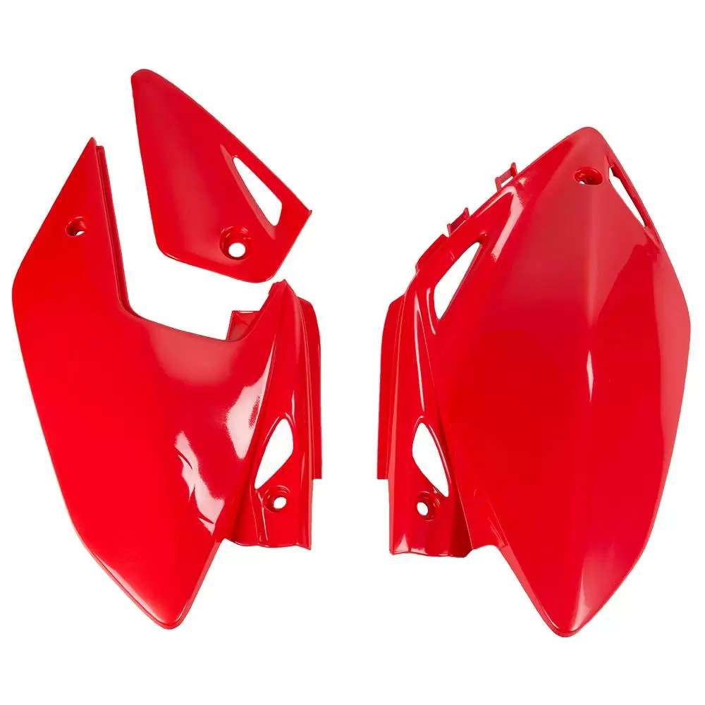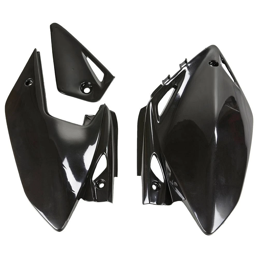 Honda Side panels by UFO Plast®. Expertly crafted from high-tensile plastic, this top-grade UFO product provides superior quality and dependability. It has already cut-out openings to ensure quick and easy installation. Better still, this product will enhance the appearance of your bike, giving it a chance to look unique and stylish.