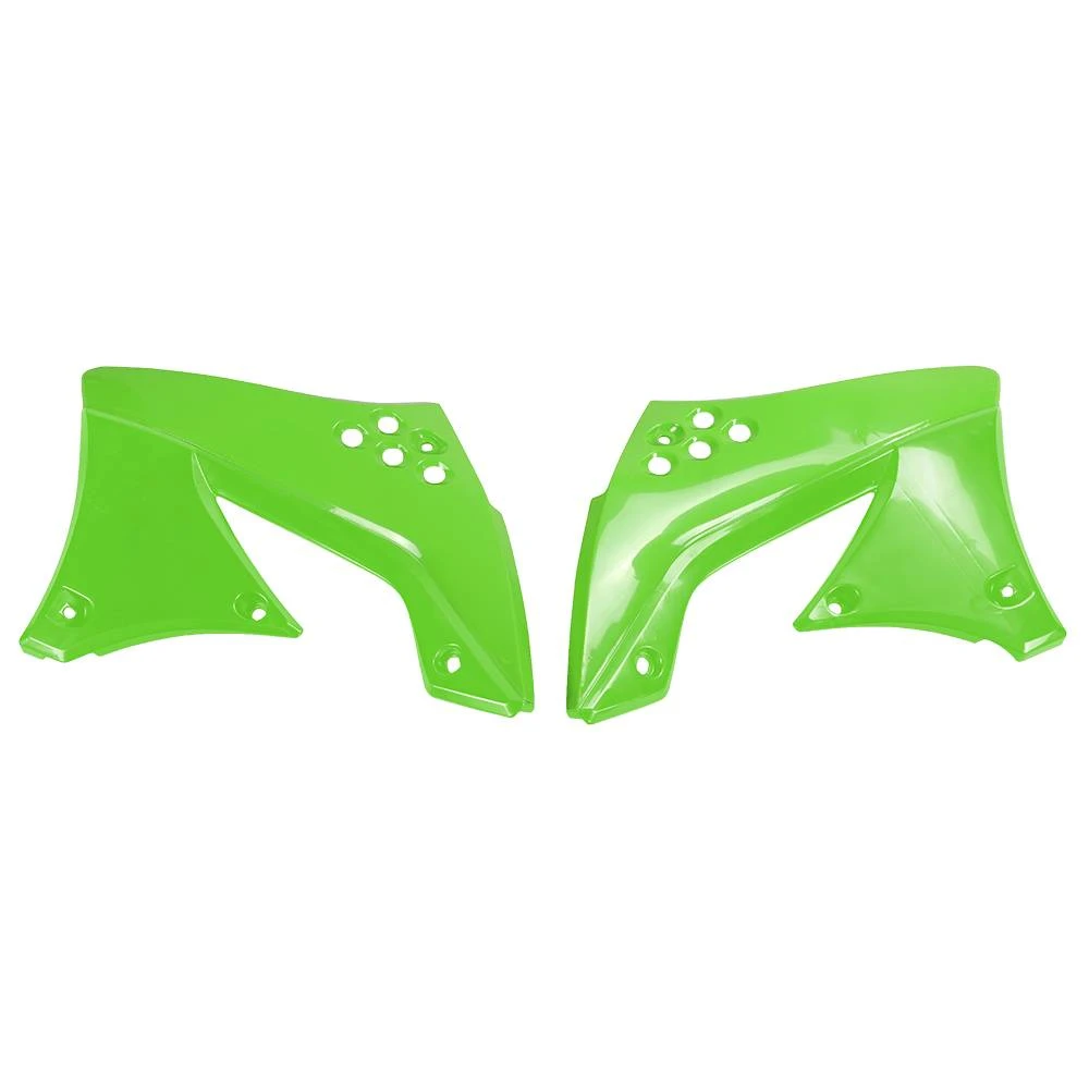 Kawasaki Radiator Covers by UFO Plast®. Expertly crafted from high-tensile plastic, this top-grade UFO product provides superior quality and dependability. It has already cut-out openings to ensure quick and easy installation. Better still, this product will enhance the appearance of your bike, giving it a chance to look unique and stylish.