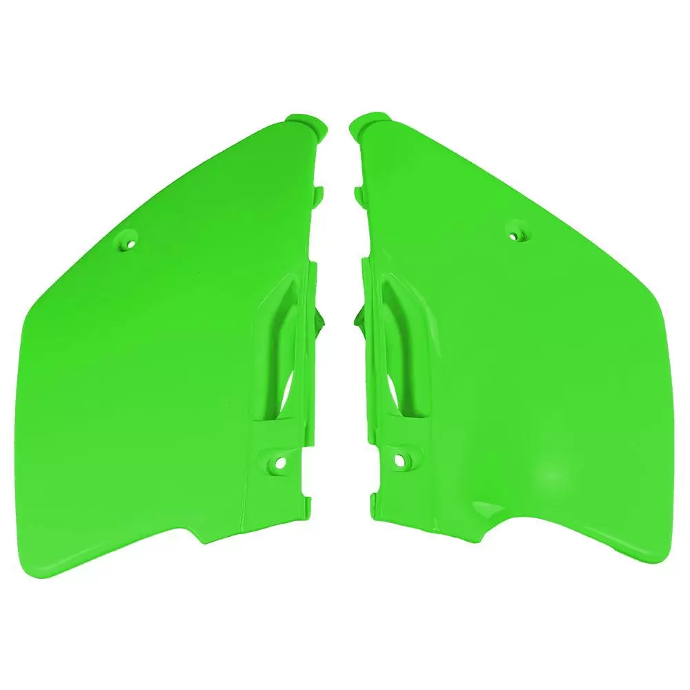 Kawasaki Side Panels by UFO Plast®. Expertly crafted from high-tensile plastic, this top-grade UFO product provides superior quality and dependability. It has already cut-out openings to ensure quick and easy installation. Better still, this product will enhance the appearance of your bike, giving it a chance to look unique and stylish.