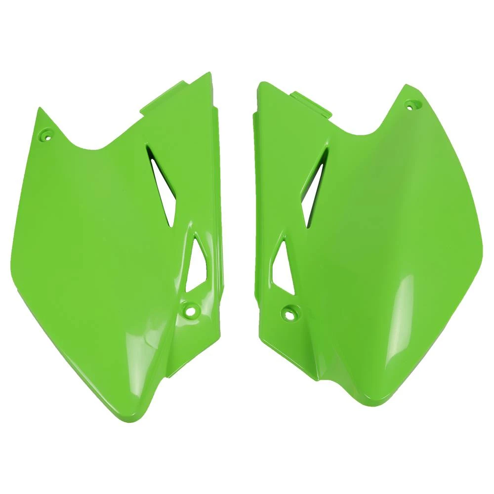 Kawasaki Side Panels by UFO Plast®. Expertly crafted from high-tensile plastic, this top-grade UFO product provides superior quality and dependability. It has already cut-out openings to ensure quick and easy installation. Better still, this product will enhance the appearance of your bike, giving it a chance to look unique and stylish.