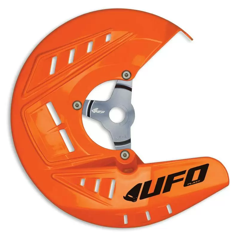 KTM Front Disc Guard by UFO Plast®. Expertly crafted from high-tensile plastic, this top-grade UFO product provides superior quality and dependability. It has already cut-out openings to ensure quick and easy installation. Better still, this product will enhance the appearance of your bike, giving it a chance to look unique and stylish.