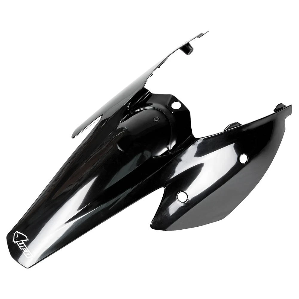 KTM Rear Fender with Side Panels by UFO Plast®. Expertly crafted from high-tensile plastic, this top-grade UFO product provides superior quality and dependability. It has already cut-out openings to ensure quick and easy installation. Better still, this product will enhance the appearance of your bike, giving it a chance to look unique and stylish.
