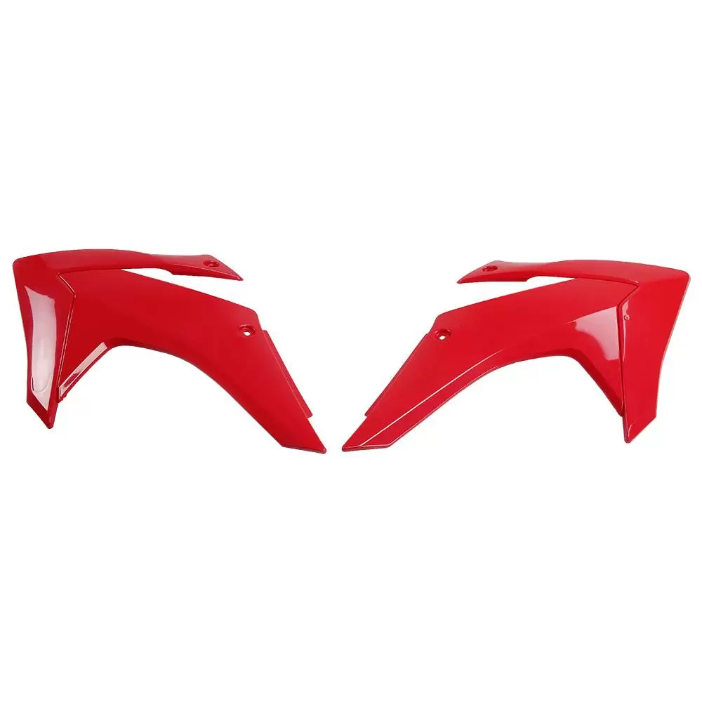 Honda Radiator Covers by UFO Plast®. Expertly crafted from high-tensile plastic, this top-grade UFO product provides superior quality and dependability. It has already cut-out openings to ensure quick and easy installation. Better still, this product will enhance the appearance of your bike, giving it a chance to look unique and stylish.