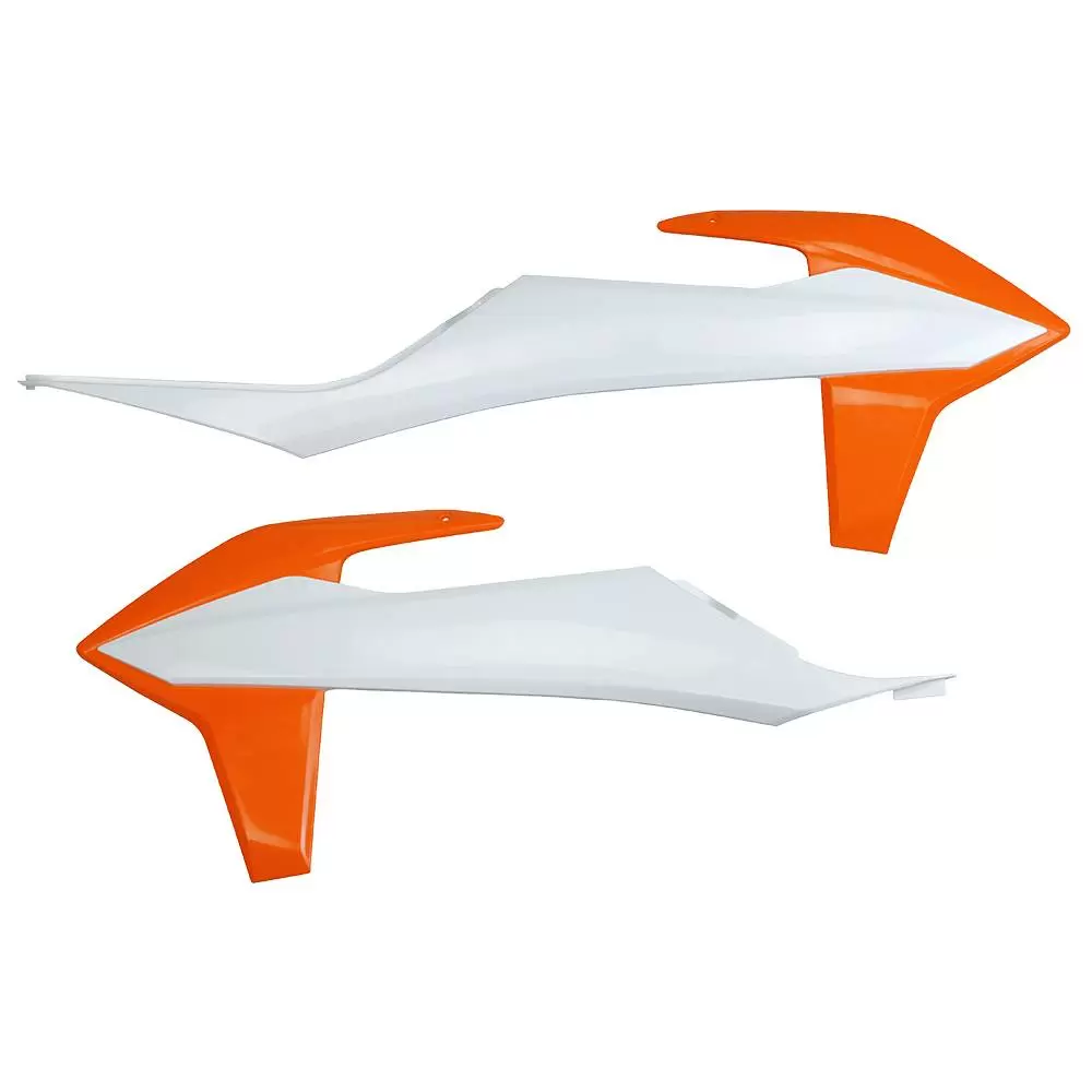 KTM Radiator Covers by UFO Plast®. Expertly crafted from high-tensile plastic, this top-grade UFO product provides superior quality and dependability. It has already cut-out openings to ensure quick and easy installation. Better still, this product will enhance the appearance of your bike, giving it a chance to look unique and stylish.