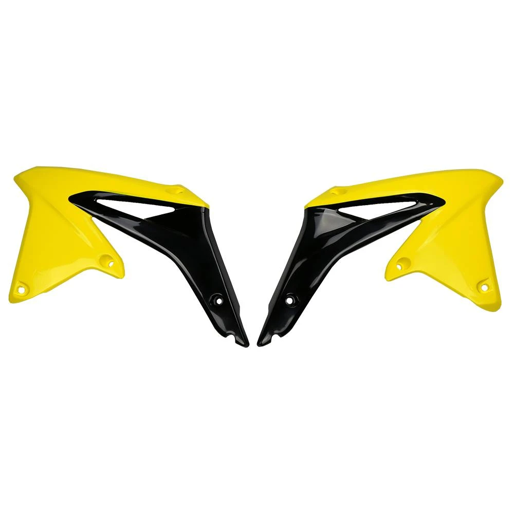Suzuki Radiator Covers by UFO Plast®. Expertly crafted from high-tensile plastic, this top-grade UFO product provides superior quality and dependability. It has already cut-out openings to ensure quick and easy installation. Better still, this product will enhance the appearance of your bike, giving it a chance to look unique and stylish.