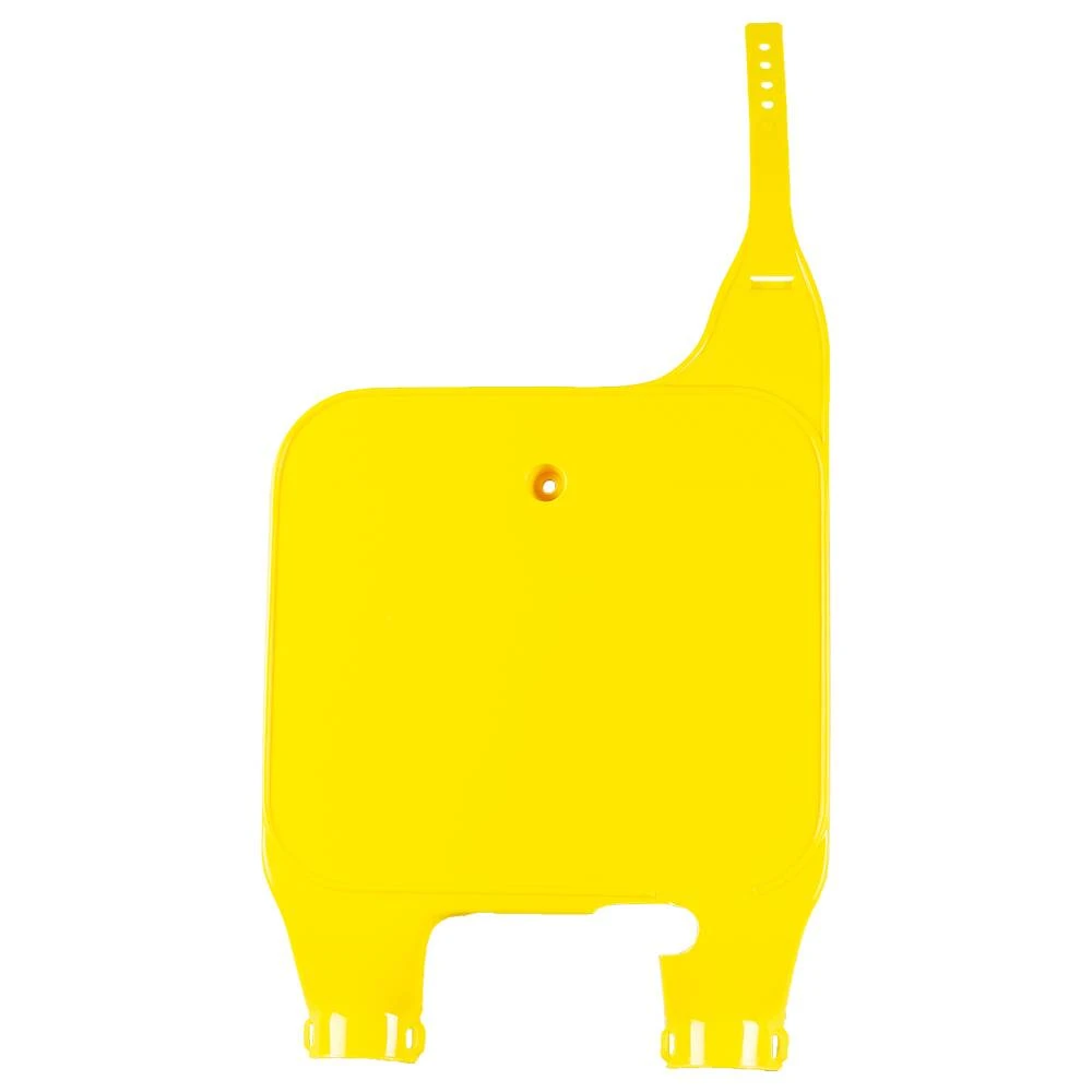 Suzuki Inverted Fork Number Plate by UFO Plast®. Expertly crafted from high-tensile plastic, this top-grade UFO product provides superior quality and dependability. It has already cut-out openings to ensure quick and easy installation. Better still, this product will enhance the appearance of your bike, giving it a chance to look unique and stylish.