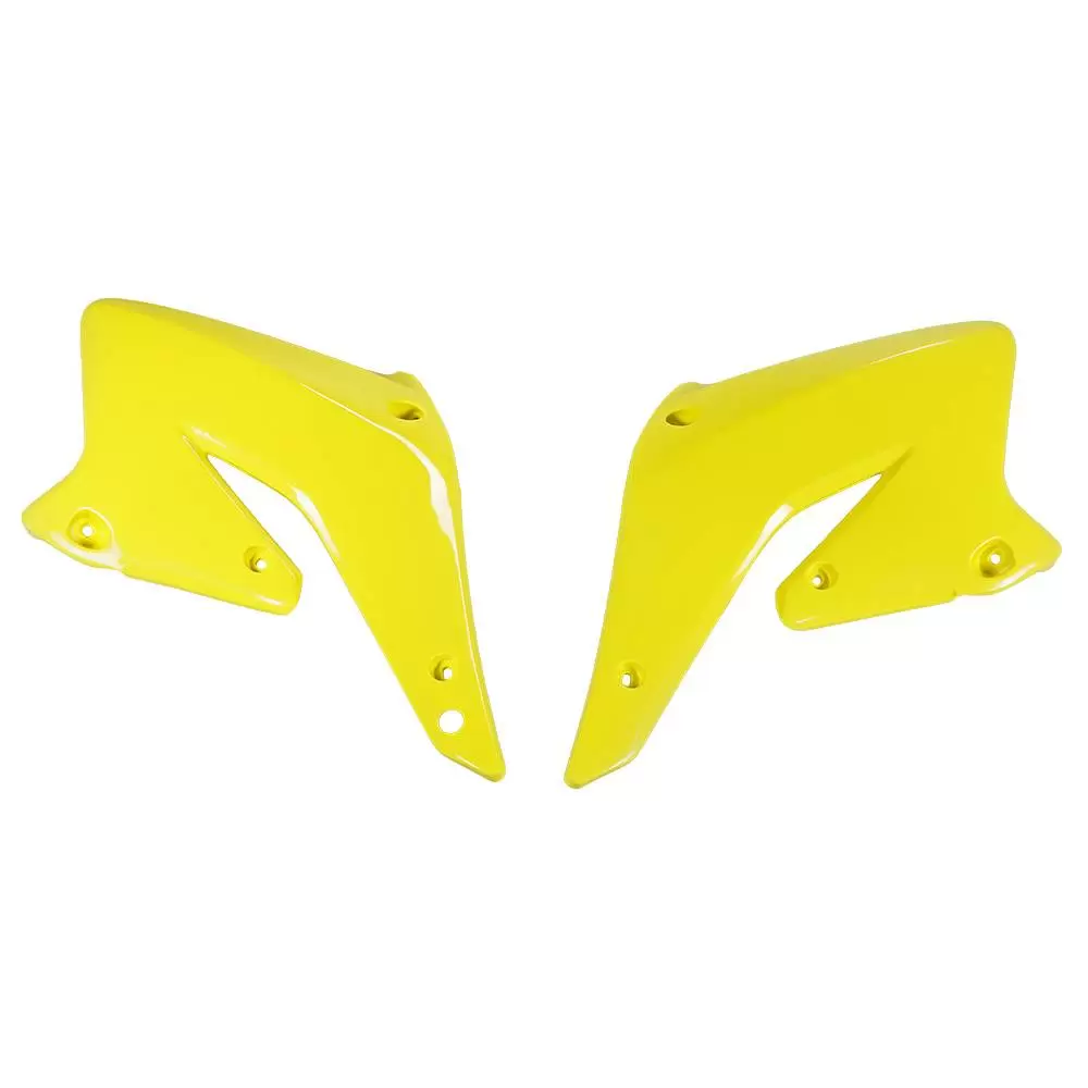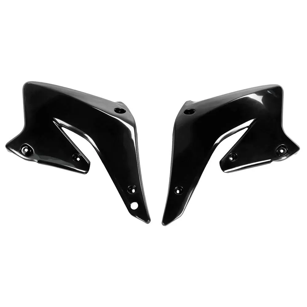 Suzuki Radiator Covers by UFO Plast®. Expertly crafted from high-tensile plastic, this top-grade UFO product provides superior quality and dependability. It has already cut-out openings to ensure quick and easy installation. Better still, this product will enhance the appearance of your bike, giving it a chance to look unique and stylish.