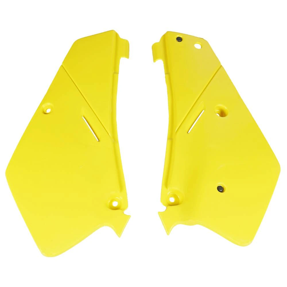 Suzuki Side Panels by UFO Plast®. Expertly crafted from high-tensile plastic, this top-grade UFO product provides superior quality and dependability. It has already cut-out openings to ensure quick and easy installation. Better still, this product will enhance the appearance of your bike, giving it a chance to look unique and stylish.