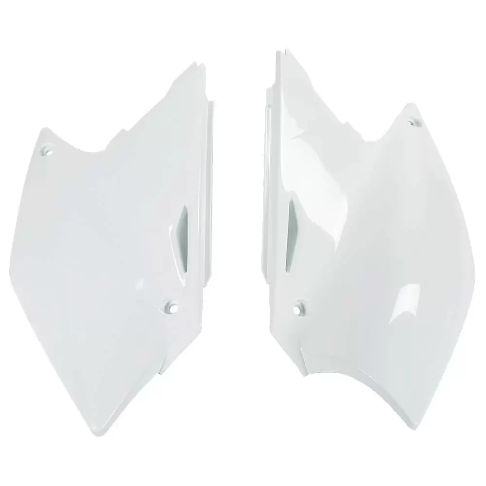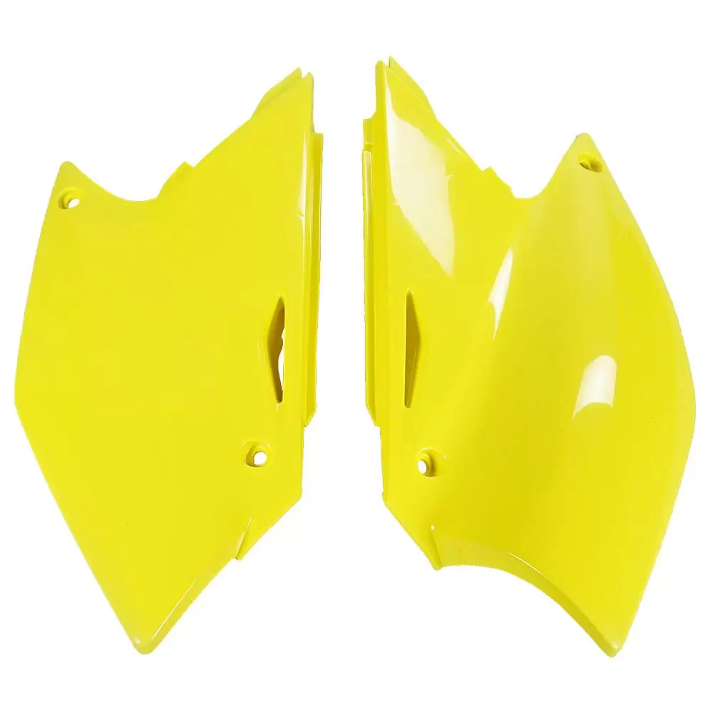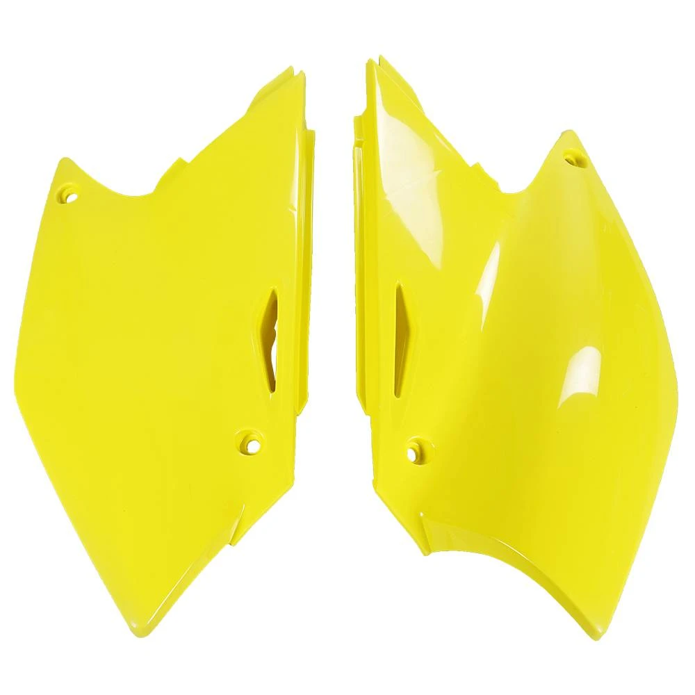 Suzuki Side Panels by UFO Plast®. Expertly crafted from high-tensile plastic, this top-grade UFO product provides superior quality and dependability. It has already cut-out openings to ensure quick and easy installation. Better still, this product will enhance the appearance of your bike, giving it a chance to look unique and stylish.