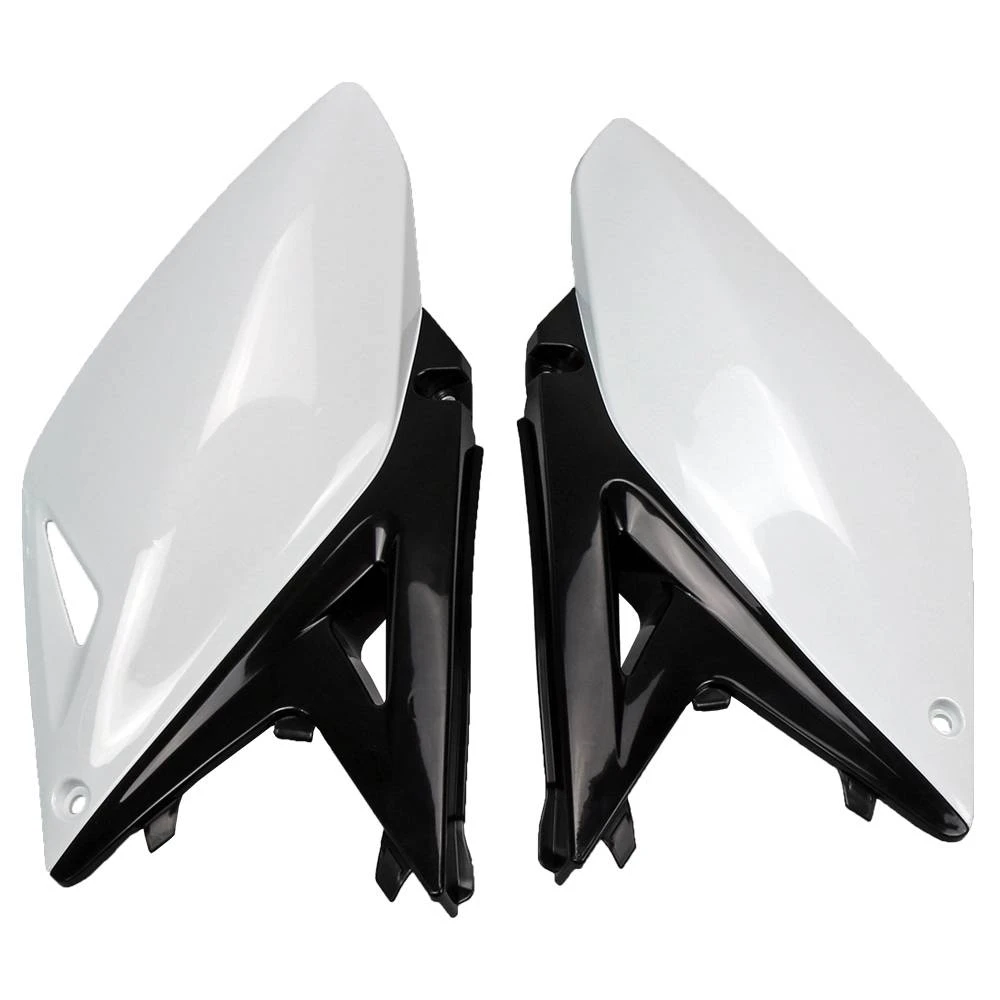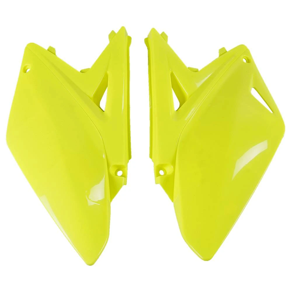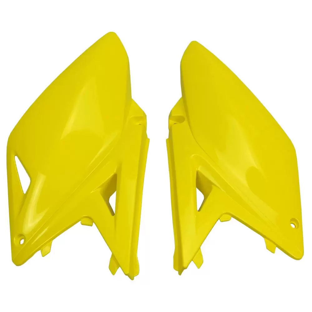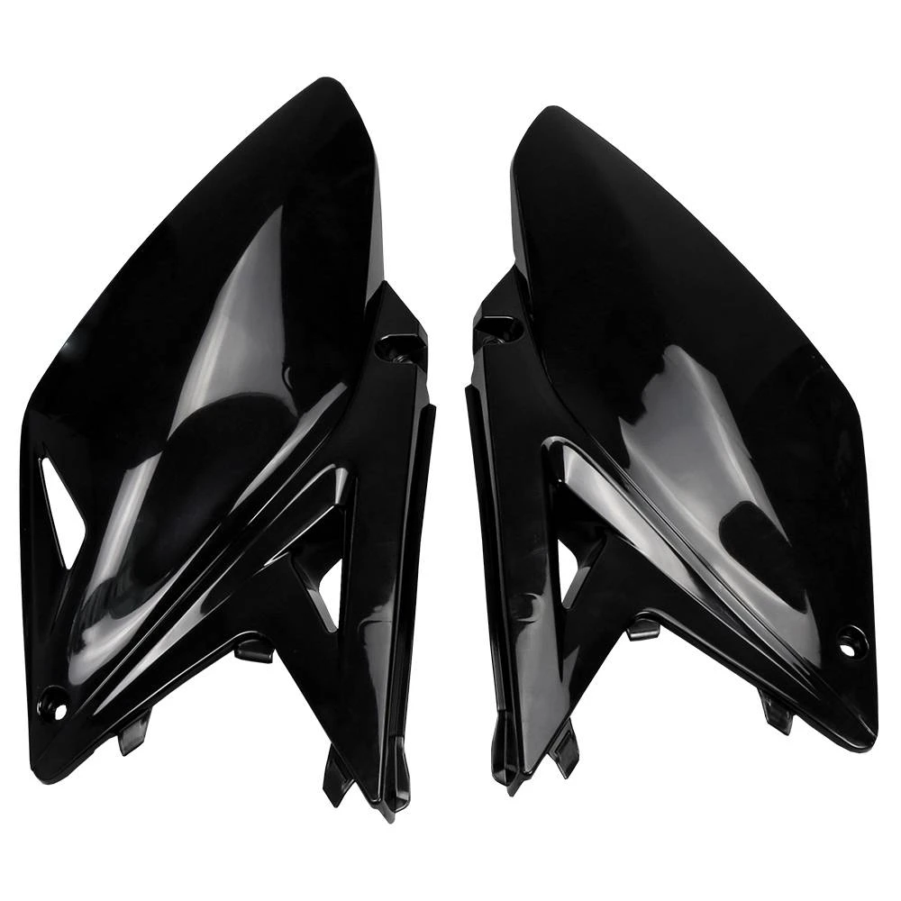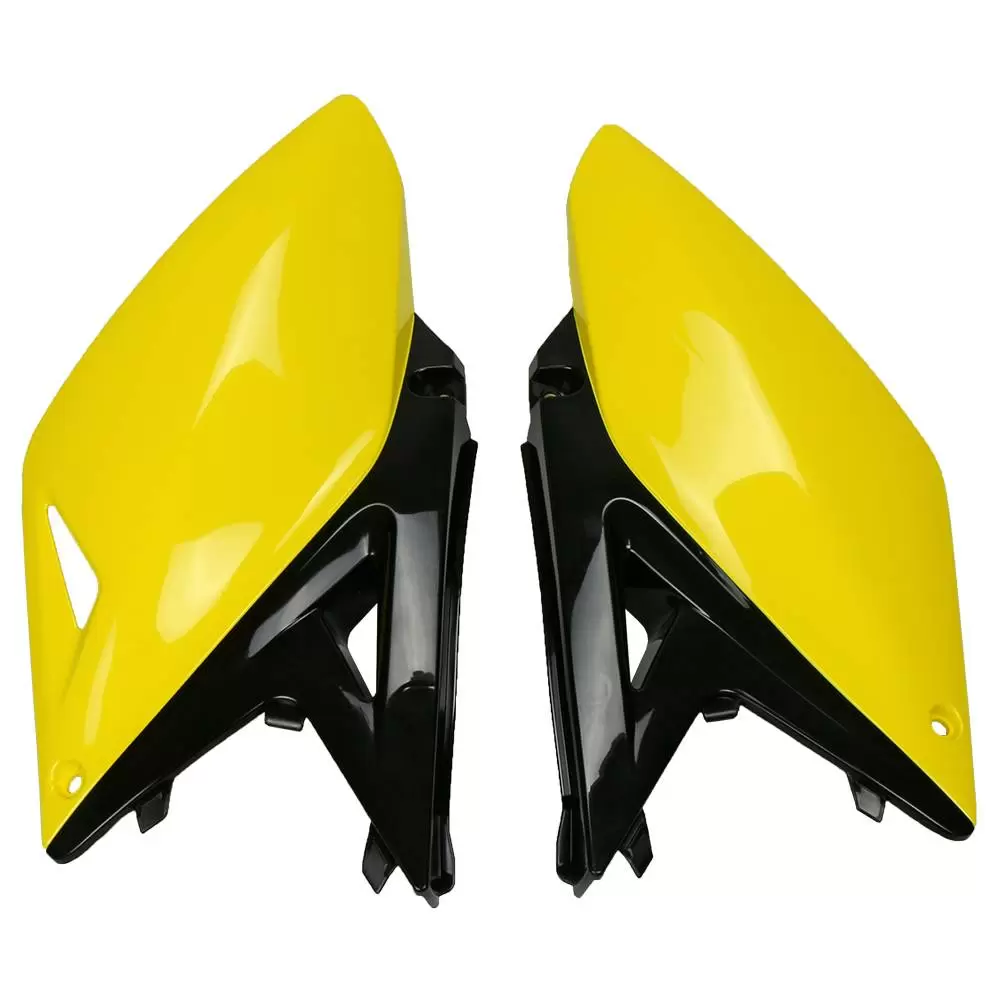 Suzuki Side Panels by UFO Plast®. Expertly crafted from high-tensile plastic, this top-grade UFO product provides superior quality and dependability. It has already cut-out openings to ensure quick and easy installation. Better still, this product will enhance the appearance of your bike, giving it a chance to look unique and stylish.