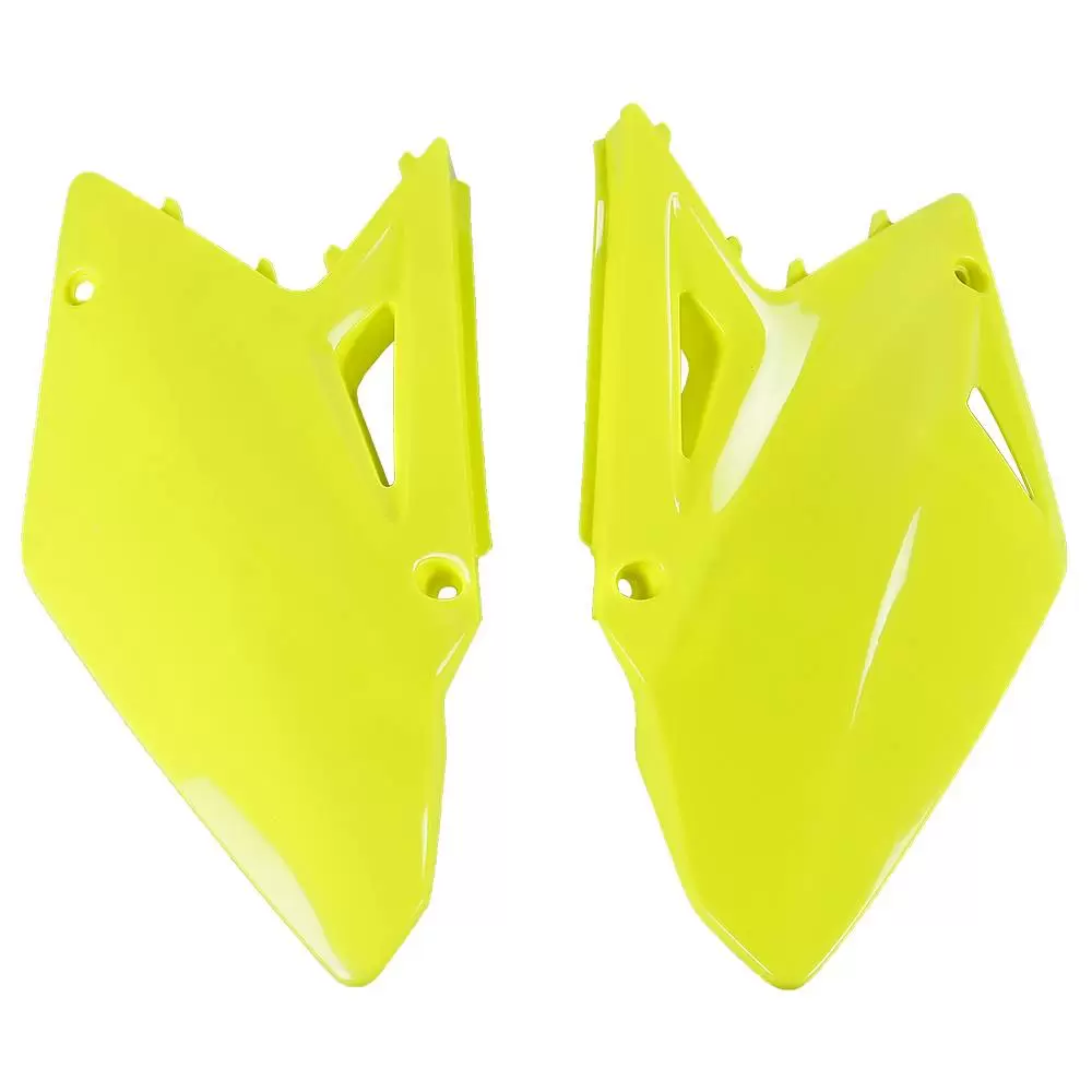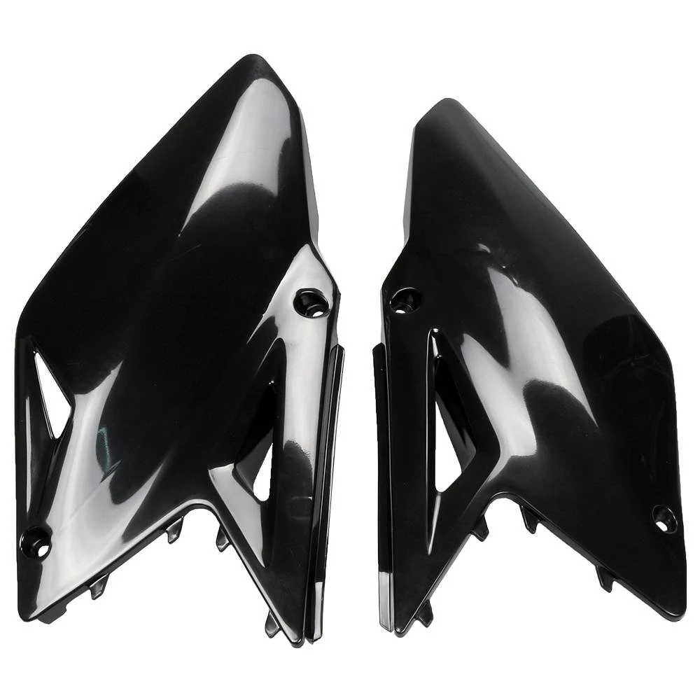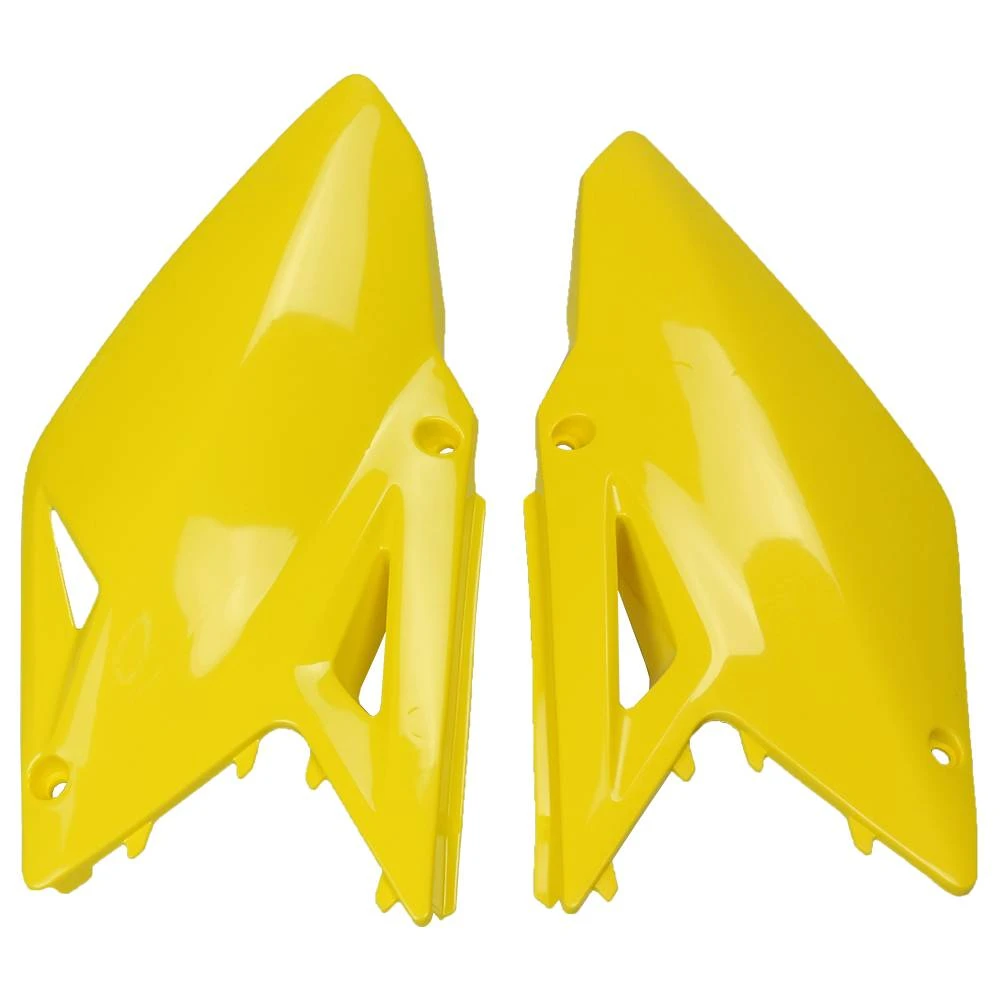 Suzuki Side Panels by UFO Plast®. Expertly crafted from high-tensile plastic, this top-grade UFO product provides superior quality and dependability. It has already cut-out openings to ensure quick and easy installation. Better still, this product will enhance the appearance of your bike, giving it a chance to look unique and stylish.
